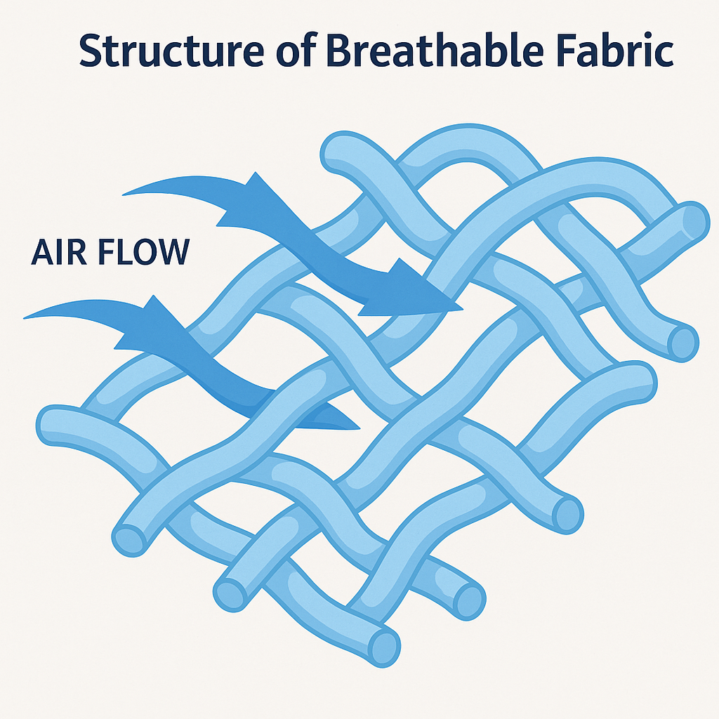 - 조직 구조: 섬유의 짜임, 굵기, 밀도 등이 통기성에 직접적인 영향을 줍니다.