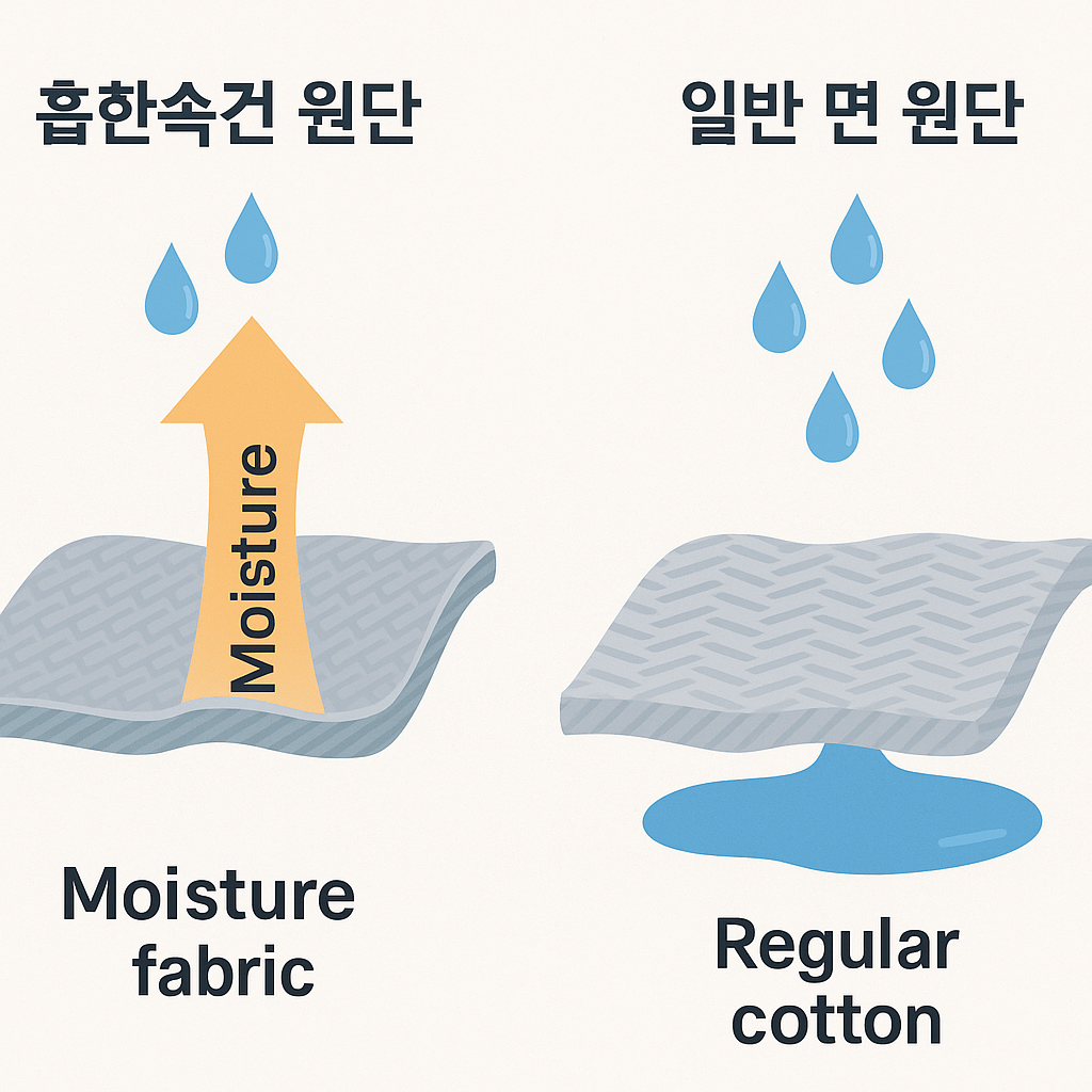 📑 목차 (Table of Contents) 1. 흡한속건 원단이란? 이 원단은 땀을 피부에서 멀리 이동시킨 후 빠르게 증발시켜 체온…